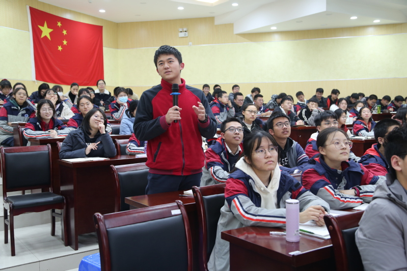 在讲座过程中,同学们就俞老师提出的问题畅所欲言,积极主动的和老师互动,现场气氛热烈欢快。在讲座的最后,俞老师对高三学生表达了殷切的期望和祝福。