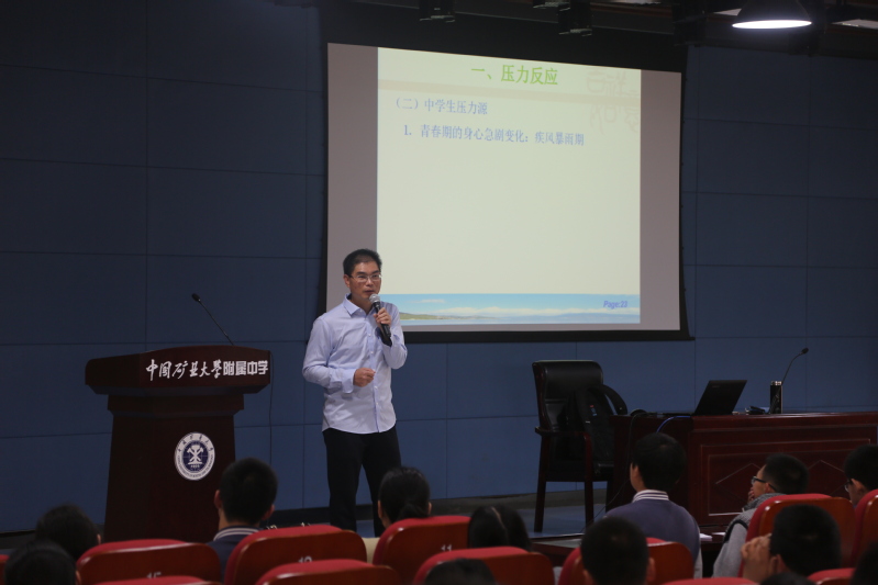 5月10日下午,由我校德育处主办的“积极压力应对”心理健康教育主题讲座在讲习堂成功举行。此次讲座特别邀请了华南师范大学积极心理学博士、中国矿业大学公共管理学院陈世民副教授为本次讲座的主讲人,我校心理社团指导老师刘彩丽老师主持本次讲座,初一年级全体学生参加了本次活动。