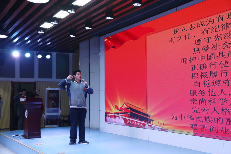 附属单位党总支书记、附属中学校长王健鹏发表了热情洋溢的致辞,代表学校向无私奉献的老师们表示衷心的感谢!向含辛茹苦的家长们表示深深的敬意!向奋力拼搏的同学们表示亲切的问候和美好的祝愿!祝贺同学们迈入了中华人民共和国成年公民的行列,期望同学们以健全而优秀的人格,赢得未来的幸福,造福家庭、国家社会。王校长语重心长的从目标、信念、拼搏、方法和心态五个方面寄语同学们,期待着同学们用智慧、自信、勇气、体魄以及壮士断腕的决心,竭尽全力来面对高考的挑战,实现人生的华丽蝶变,共创学校的跨越发展!谆谆教诲,让在座的每一位学子无比动容。