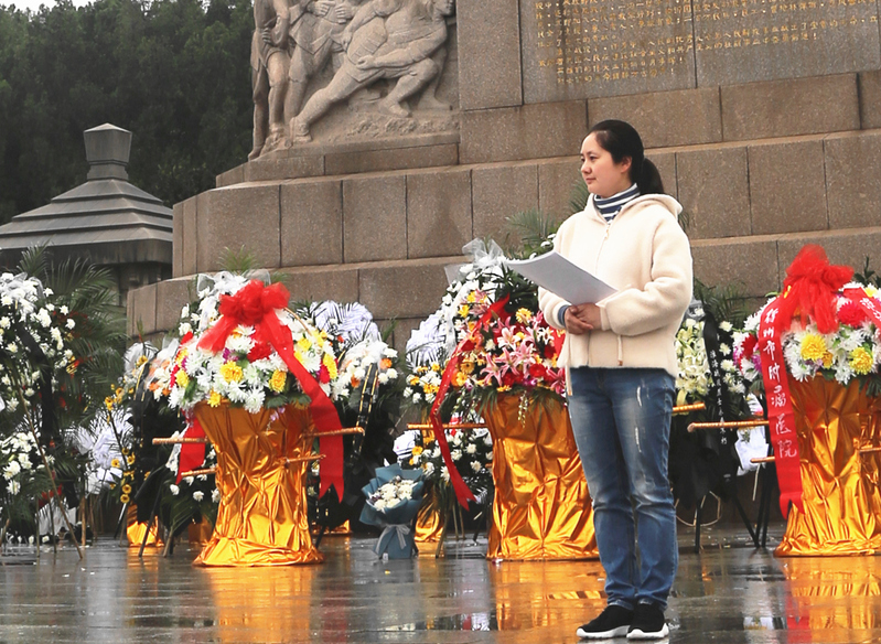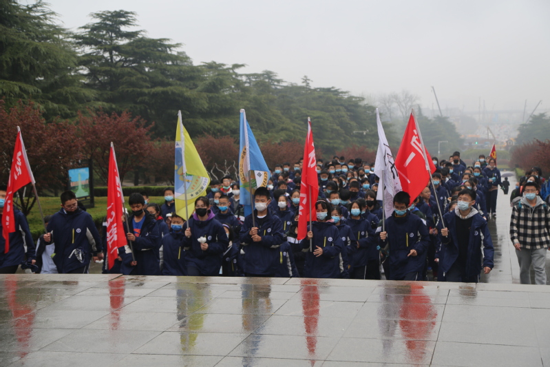 全体师生绕塔一周,聆听先烈英勇事迹