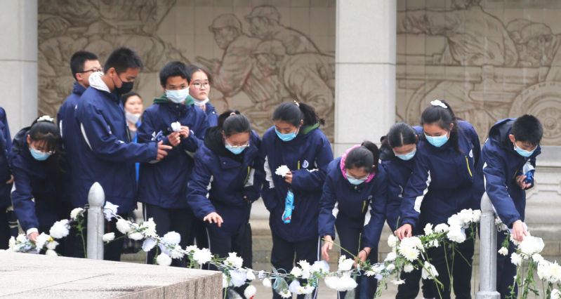 全体师生向烈士敬献白花