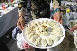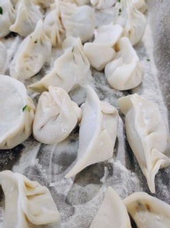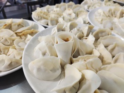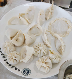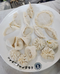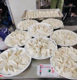 在一片欢声笑语中,一盘盘包好的饺子“新鲜出炉”了。食堂负责煮饺子。在等待的时候,食堂又给孩子们分发了他们精心准备的蛋挞、香酥饼、酸牛奶,孩子们开心地吃着、交谈着,一个个脸上绽放着幸福快乐。饺子煮好了,盛好了,孩子们和家长、老师一起共享“饺子盛宴”!自己包的饺子吃起来格外的香甜。