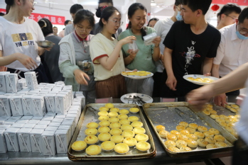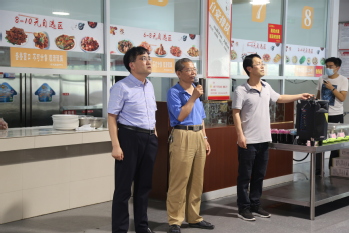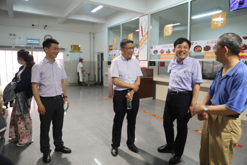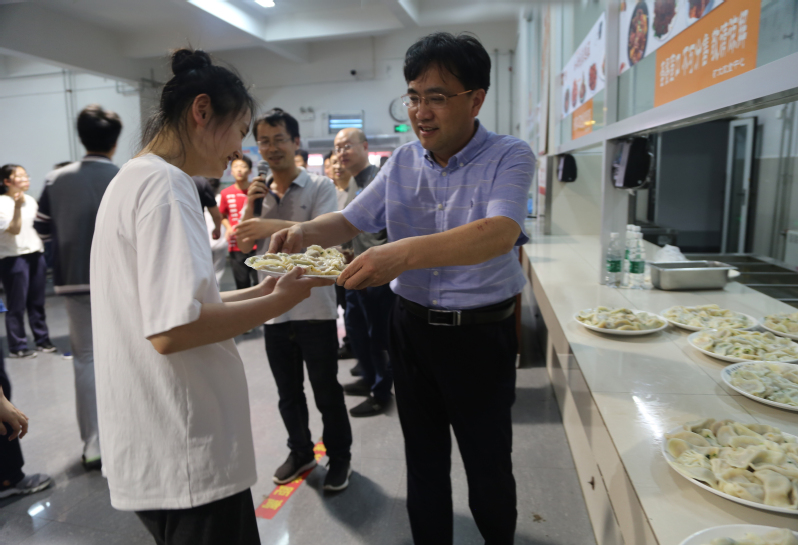 附属单位党总支副书记李洪涛、副校长黄永乔为学生们分发水饺