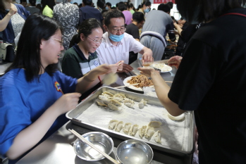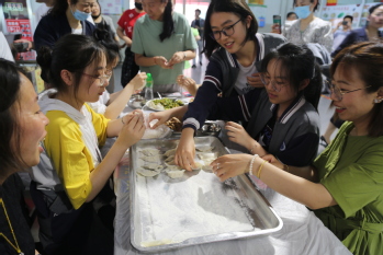 副校长黄永乔的一声令下,包饺子活动正式开始了!家长们是主力军,同时也是孩子们的“老师”,在他们的指导下,平日里“十指不沾阳春水”的学生也像模像样地包了起来。尽管动作还稍显稚嫩生疏,尽管包出来的饺子奇模怪样,但是亲自动手的喜悦、与父母共事的新鲜、与老师互动的温馨,让现场的每一个同学都沉浸在幸福快乐之中。