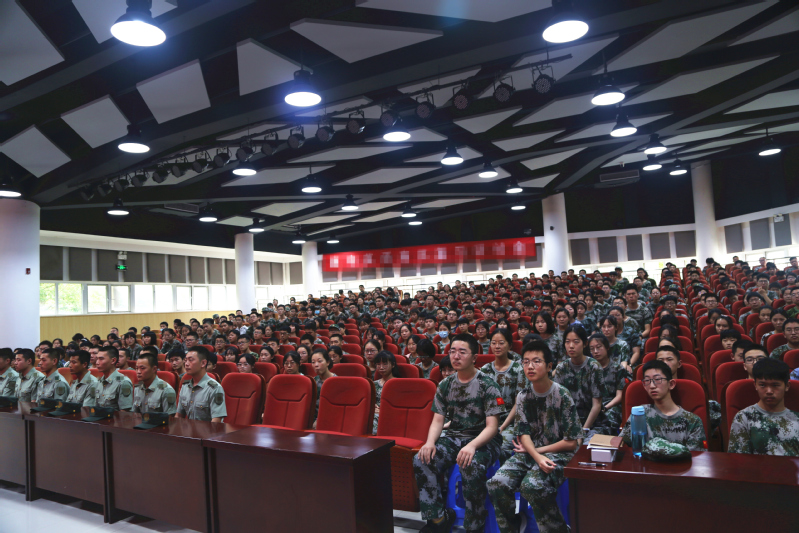 2021年7月8日下午,我校2021级高一新生暑期国防教育动员大会在讲习堂举行。军训部队指导员褚汪洋,副校长张诚、黄永乔、武昌、赵祥伟,教务处主任兼高一年级主任茅安元以及全体教官、高一新生和班主任全体出席了动员大会。大会由德育处副主任王伟主持。