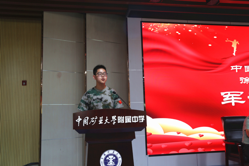 高一新生代表陈飞天在发言中谈到。我们何其有幸,见证了中国共产党成立100周年的至高荣光,又相逢在高歌猛进的徐州市矿大实验学校!他代表全体同学保证在国防教育军事训练中服从命令、听从指挥,苦练军姿、磨炼意志,努力学习、巩固成果!定会不辱使命,圆满完成国防教育训练。