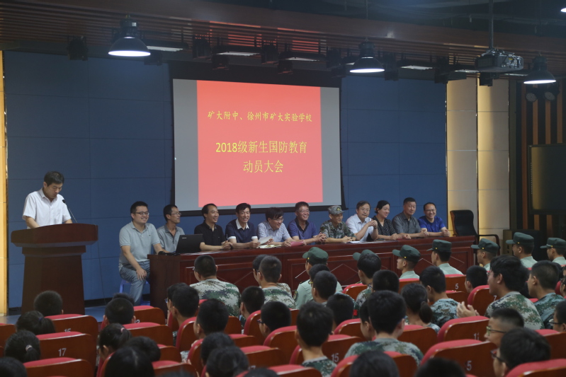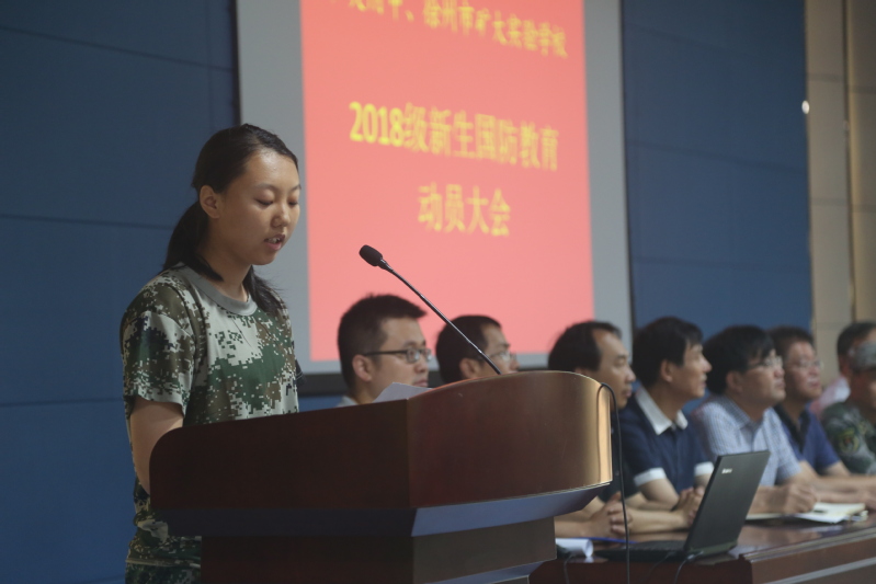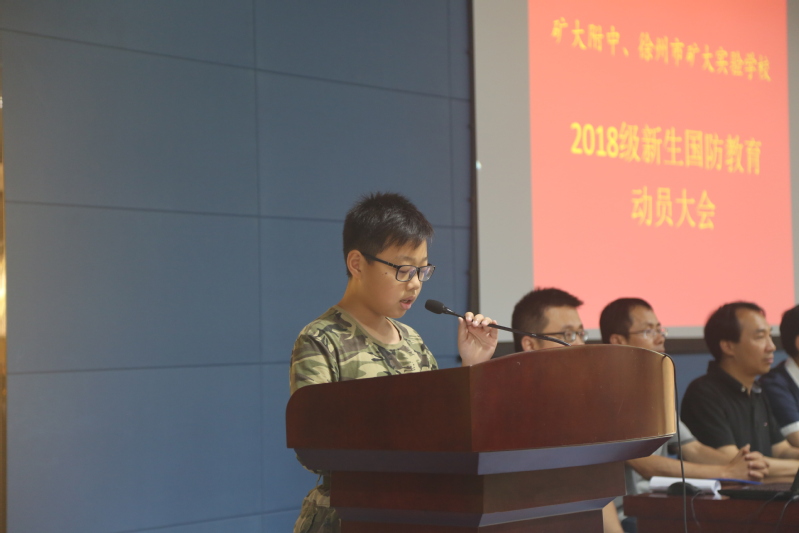 林清华副校长致辞。林校长代表学校对470余名2018级新生表示热烈欢迎,向同学们介绍了矿大附中的历史以及取得的辉煌成就,鼓励同学们用行动证明自己不愧是矿大附中的新一代传人。林校长告诉同学们,国防教育训练是考验同学们的第一块试金石,要求同学们听从指挥,遵守纪律,克服困难,顺利完成军训任务。