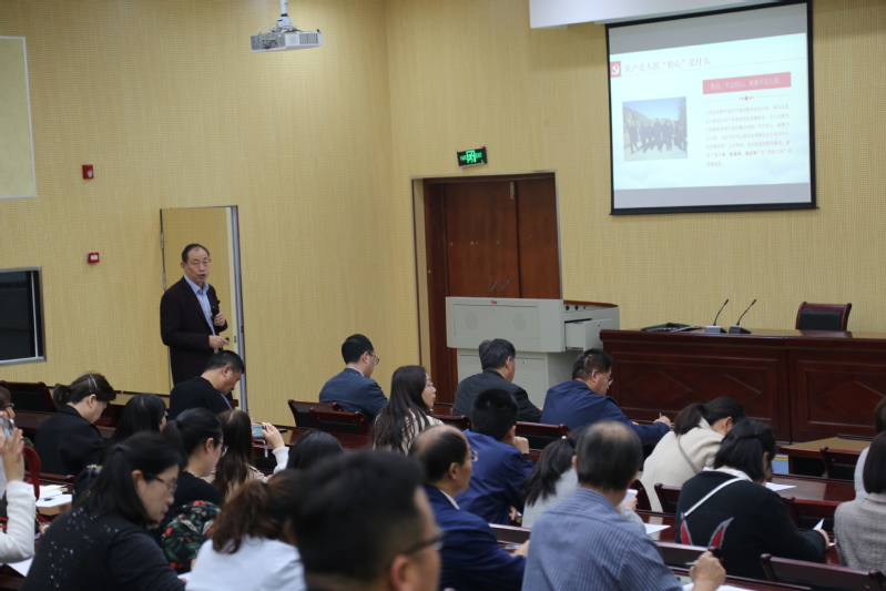 10月23日下午,附属中小学、校医院、幼儿园全体党员在中学知书堂参加了以“不忘初心、牢记使命”为主题的专题党课。