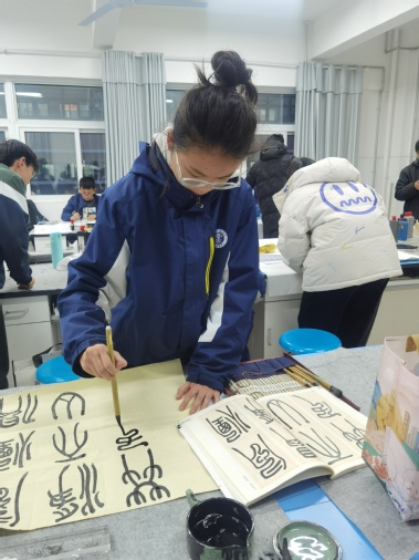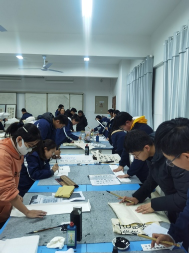 2021年12月24日下午,伴着淡淡墨香,我校“辉煌百年、颂歌献党”第二十二届校园文化艺术节之软笔比赛在社团活动室举行,各班级的书法文人将一展身手,挥毫书写青春。