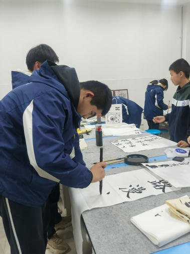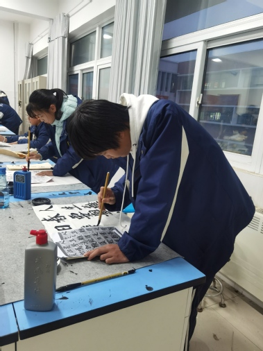 比赛在同学们的研磨声中拉开序幕。看似简单的一笔一划中,需要凝神聚智,各位选手聚精会神,精益求精,不敢有丝毫怠慢。面前,一副副软笔作品映入眼帘,古香古色的隶书,端庄大方的楷书,流畅自然的行书。