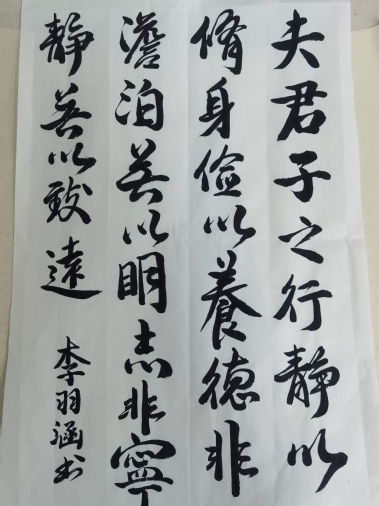 软笔书法不仅仅是一门艺术,而且还是一种养生之道。软笔可以调节情绪,陶冶我们的情操,现在的矿附学子,要弘扬中华民族的传统文化,塑造我们的宁静与专注!