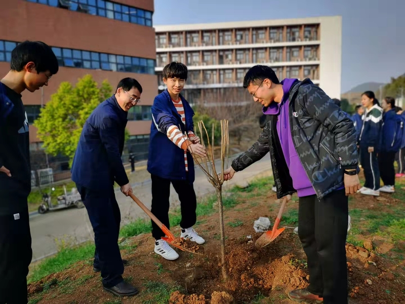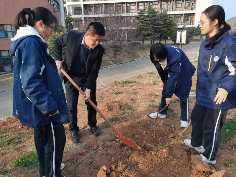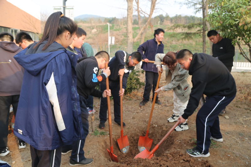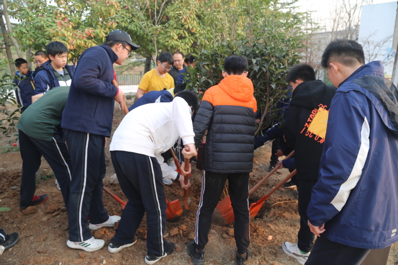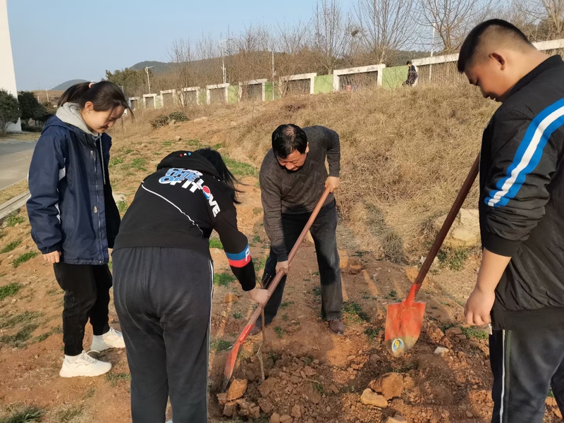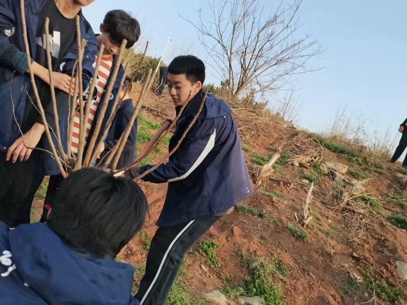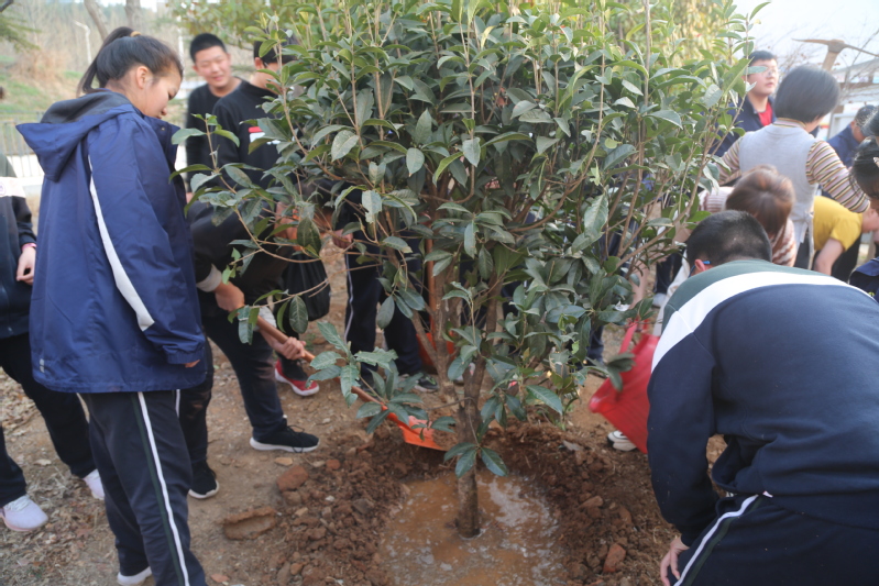 2022年3月10日下午,迎着初春温暖的阳光,我校初一的同学们在校领导老师们的带领下,带回了他们新的伙伴——三株四季桂。我们齐动手,一起把四季桂种在了学校讲习堂的前侧。3月11日下午,初三年级的同学们在校园东山坡上也种植了一批果树苗。同学们积极参与,分工明确,井然有序。有的挖坑,有的扶树苗,有的填土,还有不少同学主动拿杯子和桶去接水灌溉。大家热情高涨,干劲十足,脸上洋溢着快乐的笑容,欢声笑语遍布校园。