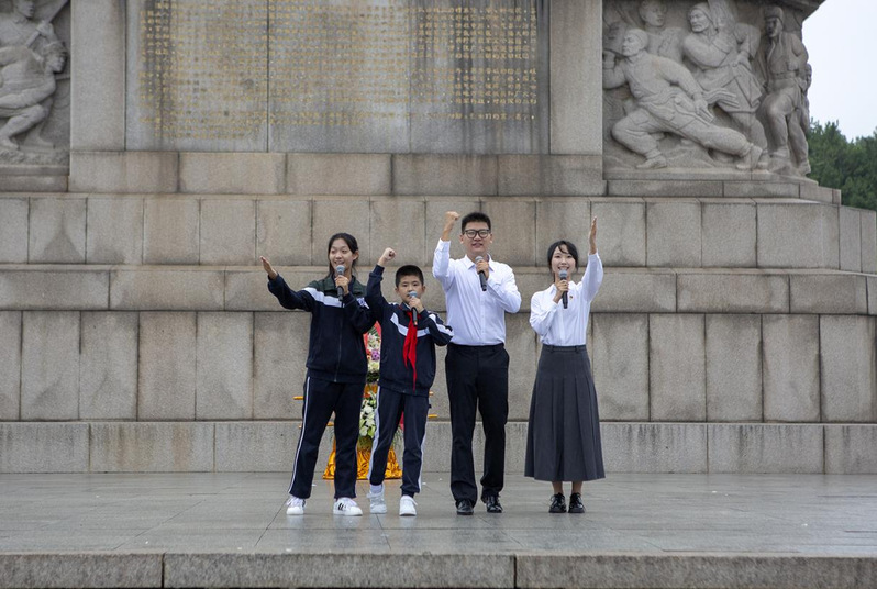 本次活动围绕缅怀英烈这一主题,通过情景朗诵、纪念碑下的主题分享、合唱等形式,师生同上一堂沉浸式仪式思政课,丰富思想政治教育工作载体,深入推进大中小学思想政治教育一体化建设。