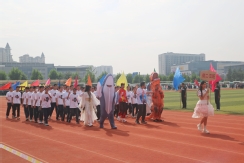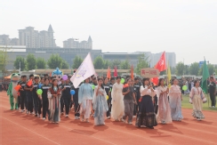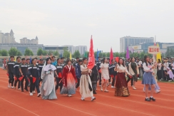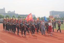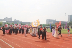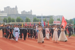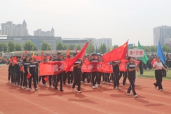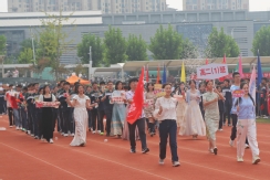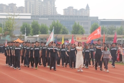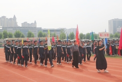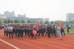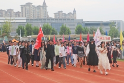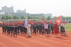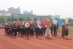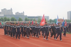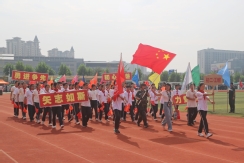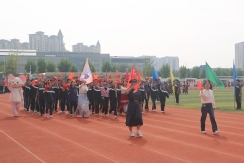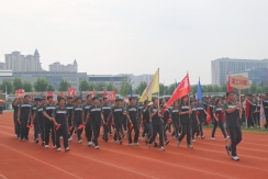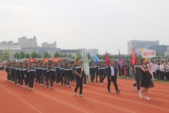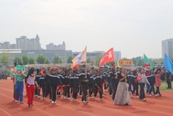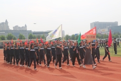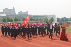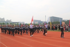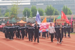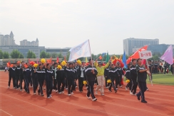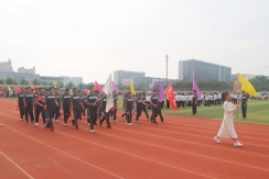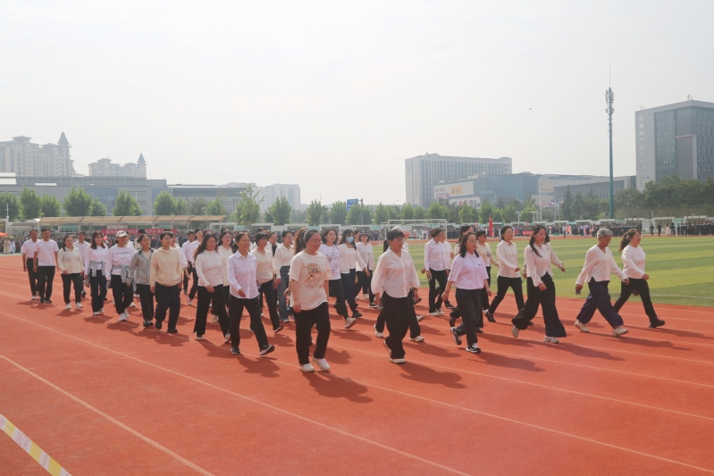 裁判员方队迈着稳健的步伐步入运动场,老师们精神抖擞、神采奕奕,赢得了同学们的阵阵欢呼。