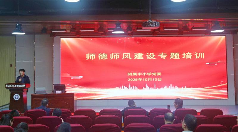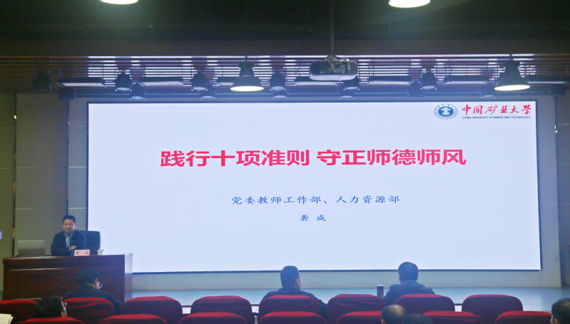 10月15日下午,中国矿业大学附属中小学在博学大讲堂举办师德师风专题培训。大学党委教师工作部、人力资源部副部长龚成受邀为附属中小学全体教职工作“践行十项准则 守正师德师风”专题报告。此次报告旨在深化教师思想政治建设,明确师德行为边界,为落实立德树人根本任务筑牢根基。