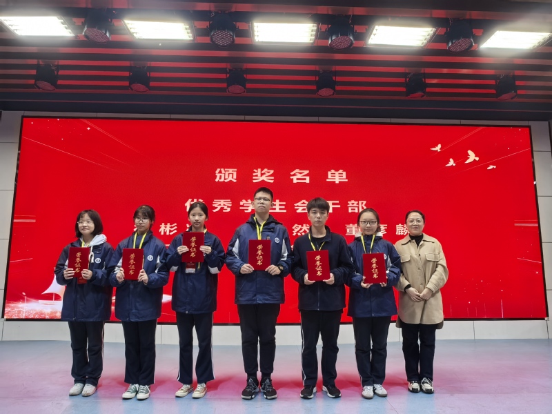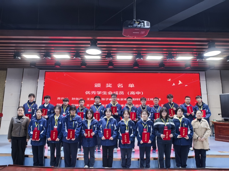 活动在主持人热情洋溢的开场词中拉开帷幕,现场气氛庄重而热烈。颁奖仪式率先进行,依次颁发了“高中部优秀学生会成员”“初中部优秀学生会成员”“优秀学生会干部”及“优秀学生会主席”等荣誉。获奖同学依次登台,在热烈的掌声中接过荣誉证书。这份荣誉不仅是对他们过去一年辛勤付出的肯定,更是对全体学生干部的鼓舞与激励。