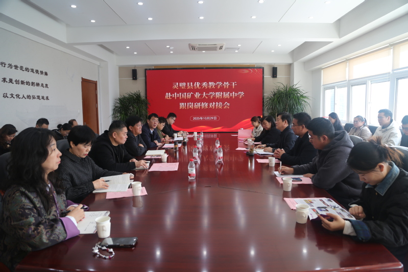 灵璧县教育局领导对中国矿业大学及附属中学近年来给予灵璧教育的大力支持和帮助表示感谢。此次灵璧县选派2025年第二批12名优秀教学骨干教师赴附属中学开展为期2周的跟岗研修,截至目前,附属中小学已累计接纳25名教师来校参与跟岗研修活动。此举既是双方教师互相交流、取长补短的深度教研,也是持续深化教育帮扶的重要举措。期待校地双方在教育管理、教学改革、师资建设等方面建立长效机制,助力灵璧乡村教育振兴工作。