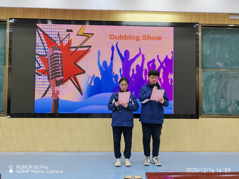 青春校园里,电影是触动心弦的光影片段,是梦想与激情碰撞的动人乐章。为给热爱英文配音的学子搭建展示自我、挥洒才华的舞台,12月16日下午,我校举办第二十六届校园文化艺术节高中英文配音大赛。英语教研组李海南、梁令、衡方方、侯文萃、李可维、孟莹莹等老师亲临赛场,担任本次大赛评委。