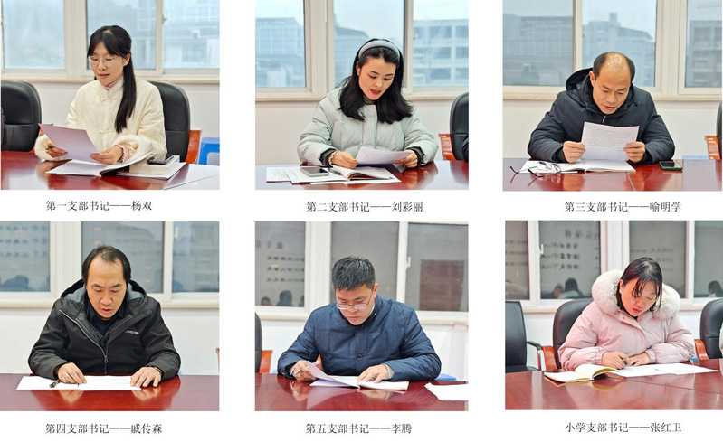 会上,六位党支部书记围绕学习贯彻党的二十大和二十届历次全会以及全国教育大会精神,扎实开展深入贯彻中央八项规定精神学习教育,推进作风建设常态化长效化,教育引导党员师生深刻领悟“两个确立”的决定性意义,坚决做到“两个维护”,从教育党员、管理党员、监督党员、组织师生、宣传师生、凝聚师生和服务师生等方面汇报了一年来履行全面从严治党责任和抓基层党建工作情况。张诚书记、宋幸莉副书记和党委委员对党支部书记述职情况进行了逐一点评,肯定了成绩,指出了不足和改进的方向。