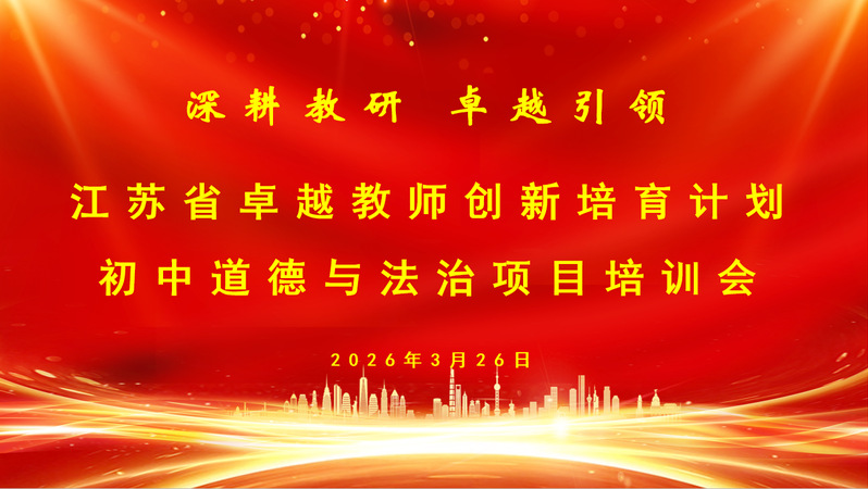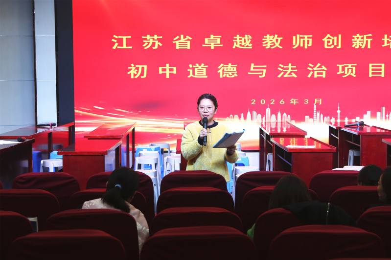 2026年3月26日,江苏省卓越教师创新培育计划初中道德与法治项目培训活动在中国矿业大学附属中学举行。徐州市教师发展学院研究策划室主任张雷,中国矿业大学附属中小学校党委书记、校长张诚,副校长阎会及来自全省各市的骨干教师共同参与活动。本次活动聚焦课堂教学创新与核心素养培育,通过同课异构、议课研讨、专题讲座等形式,为参训教师搭建了深度交流与学习的平台。活动由卢冰清老师主持。