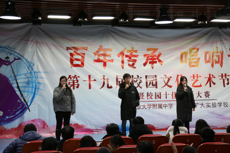 和高雅之韵,扬青春之美。为了全面推进素质教育,进一步繁荣校园文化,12月10日下午,我校“百年传承,唱响青春”第十九届校园文化艺术节开幕式暨校园歌手大赛在讲习堂隆重举行。