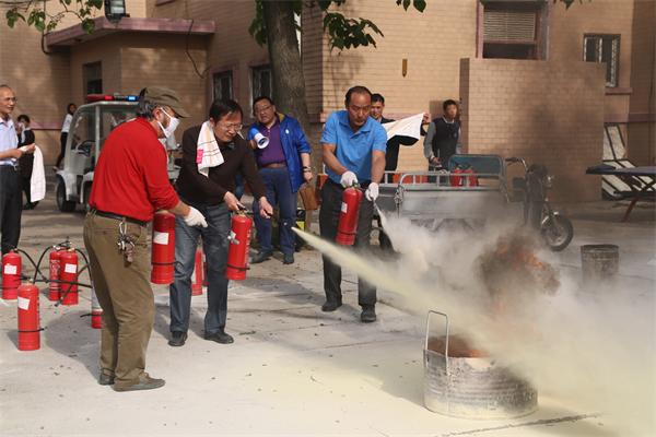 随后,大学保卫处人员现场给全校教职员工讲解、示范了干粉灭火器的正确使用方法,每位教职员工都进行了模拟灭火演练。