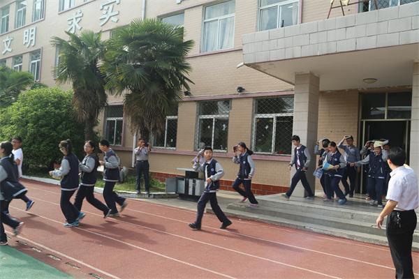 下午4:00,随着警报声响起,全校1500余名学生在班主任的安排下迅速、有序地撤离教室。学校各部门根据预案安排,在各楼梯口指挥学生按照疏散路线,快速逃离到学校操场指定的位置集合,期间未发生任何安全事故。