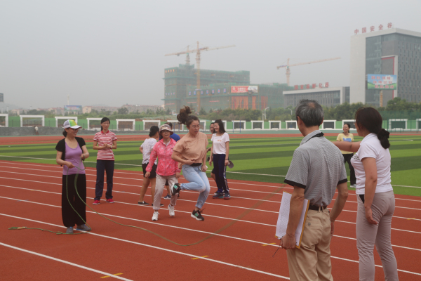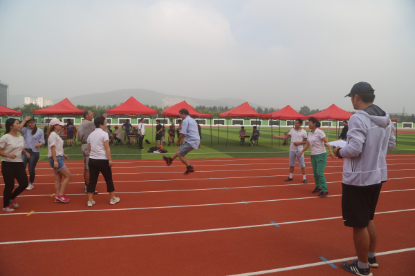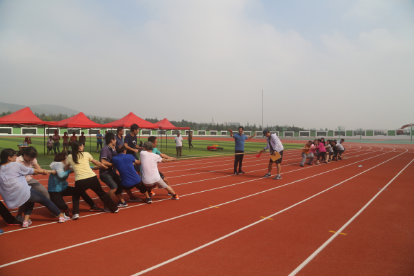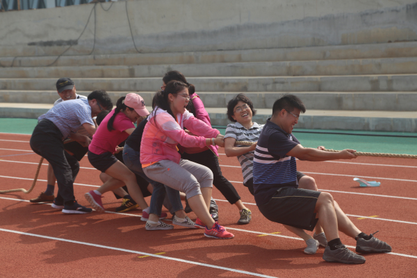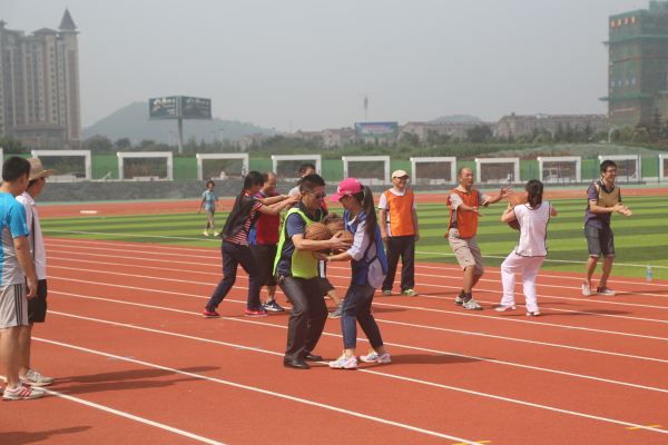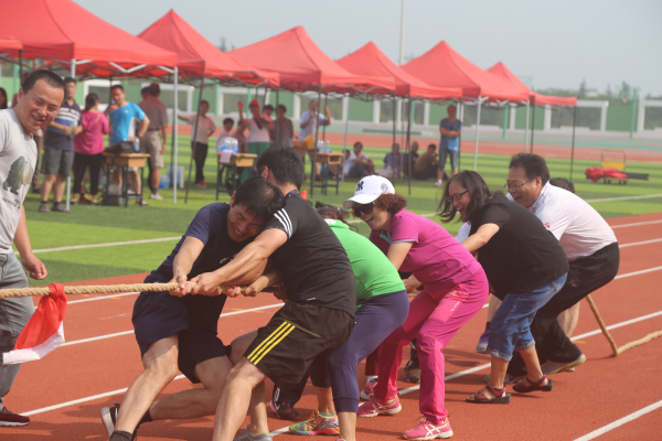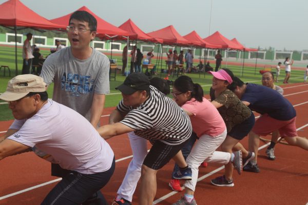 本次趣味运动会在内容和形式上进行了创新,突出了项目的趣味性、娱乐性和观赏性。比赛设置了10人跳大绳、10人拔河、6×50m抱球接力、8×50m短跑接力等团体项目和实心球个人项目,按年级及行政共设七小组进行比赛。这几个项目将竞技与娱乐相结合,不仅是智慧与体力的角逐,更是团结和协作的完美比拼。骄阳似火,酷热难耐,让人汗流浃背,但这丝毫没有影响教职工们踊跃参赛的热情。宽阔的球场和崭新的环保塑胶跑道上,运动员努力拼搏、奋勇争先,观众的助威声、喝彩声此起彼伏。我们不仅看到了运动员追求竞争和超越的精彩,也看到了老师们奋力笔耕之外的阳光和豪迈。