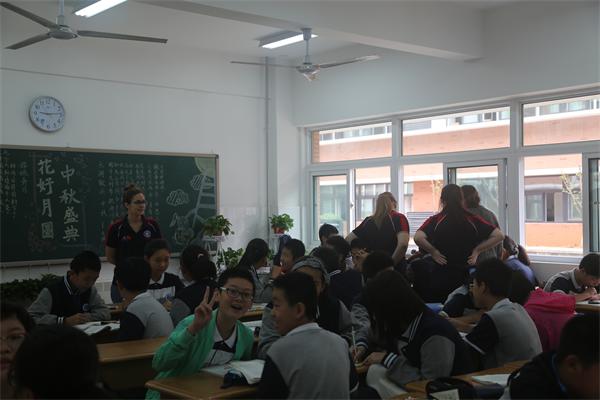 的37位师生对我校进行了为期一天的访问。他们走进课堂,饶有兴趣地与我校学生一起聆听了中文、数学、英语、音乐、体育