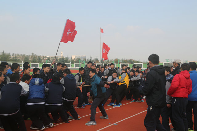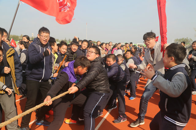 上午10点,各班排着整齐的队伍来到了操场。在比赛开始前,初一年级组进行了比赛动员,希望同学们能够克服寒冷的天气,积极参加比赛,充分发挥体育精神,“友谊第一,比赛第二!”负责比赛的评委老师也向大家宣读了比赛规则。在裁判的带领下大家分别进入比赛位置,每个班共出20名同学参加比赛,包括10名男同学、10名女同学。首先进行比赛的两组是2班对战6班、3班对战5班。在裁判的一声哨下,紧张的拔河比赛开始了。大家似乎都使出了浑身力气,都想为自己的班级赢得荣誉。有不小心的同学在比赛过程中因为没有掌握比赛的技巧,手被拔河绳拉伤了,但他们都笑一笑说没事,继续参加比赛。经过了激烈的角逐之后,最后由初一(4)班光荣地获得了一等奖,现场评委老师也依次宣读了其他班级的比赛名次,并现场了为他们颁发了奖状,与各班合影留念。