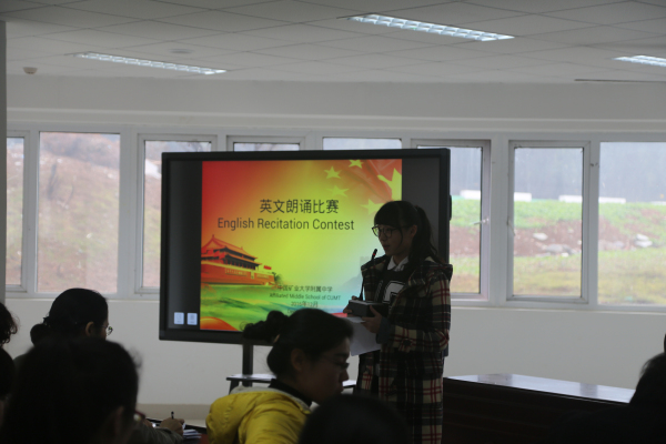 为创建良好的校园英语学习氛围,提高学生学习英语运用英语的能力,改变传统的英语学习习惯,变“哑巴英语”为“说出来的英语”和“喊出来的英语”。2016年12月21日,矿大附中特举办了一场精彩的高中英语朗诵比赛。本次演讲比赛共有25名选手参赛,比赛中选手们充分展现了他们高超的英语口语表达能力,向我们清晰地阐述了他们的观点:《Yesterday and tomorrow》和《Smoking in public places》,并大声宣告《My dream》,《Say goodbye to Cambridge》、《Be whoever you want to be》等故事催人泪下……选手们在舞台上尽情地挥洒才情,侃侃而谈,表现突出。他们的精彩演讲、敏捷的思维以及流利的口语水平博得了台下老师和同学们的阵阵掌声。最后,评委老师分别对此比赛进行了有针对性的点评。
