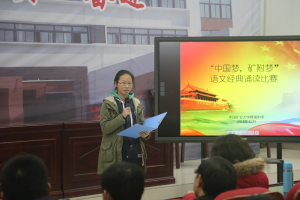 为丰富学生课余生活,激发学生对经典诗歌的诵读兴趣,12月21日下午中国矿业大学附属中学举行了“中国梦 矿附梦”语文经典诵读大赛。