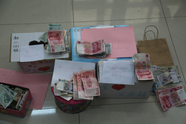 这次义卖活动,初一年级共筹集善款4271.3元,其中一班822.9元,二班654.5元,三班761.5元,四班670元,五班602.4元,六班760元。这些善款将用于年级组的“学雷锋,献爱心”系列活动中。