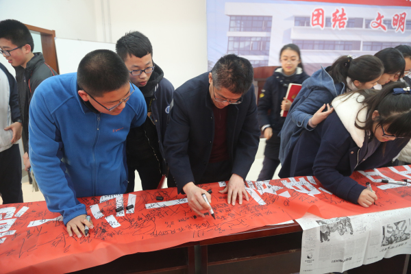 在条幅上写签名