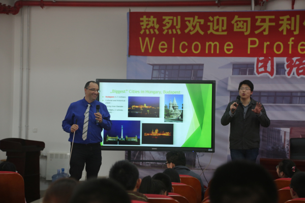 体活课铃声响起,讲座准时开始。哈沃斯教授首先介绍了关于匈牙利多方面的情况,包括历史,人口,地形,语言以及较大城市的概况等,又重点讲述了匈牙利优秀的教育体制,并结合自己个人经历和人生体验给大家提出了一些建议。在提问交流环节,教授幽默风趣地回答了同学们提出的各种问题,同学们感到受益匪浅。最后,本次讲座在热烈的鼓掌声中圆满结束。