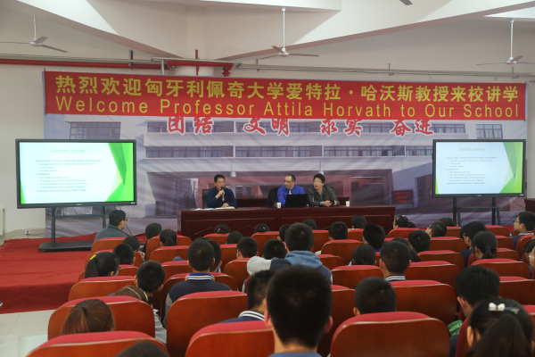 4月13日下午,匈牙利佩奇大学教授爱奇拉·哈沃斯来到我校给初二年级全体同学开办了题为“匈牙利的教育、科技和生活”的讲座。