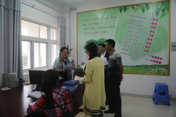 刘主席一行在校长王健鹏、副校长林清华以及德育主任杨伟利等陪同下,先后参观了校园、心理咨询室、教室、餐厅以及创建文明校园档案材料室。刘主席评价我校校园环境优美、卫生干净整洁,教室内24字核心价值观、八礼四仪等宣传资料布置合理,基本达标。刘主席特别检查了心理咨询室,详细的咨询记录以及硬件设施配备清单获得了刘主席的高度评价。同时,在检查创建文明校园档案材料中,青春仪式和成人仪式完备的影像资料、独具一格的创建文明城市知识手册等也获得了刘主席的好评。刘主席也指出了我校在迎创文明校园工作中的不足,比如,心理咨询室硬件设施不完善,团体心理辅导材料不全,创建文明校园档案整理不规范等。