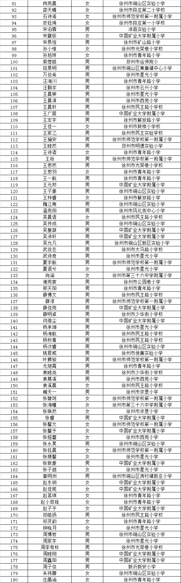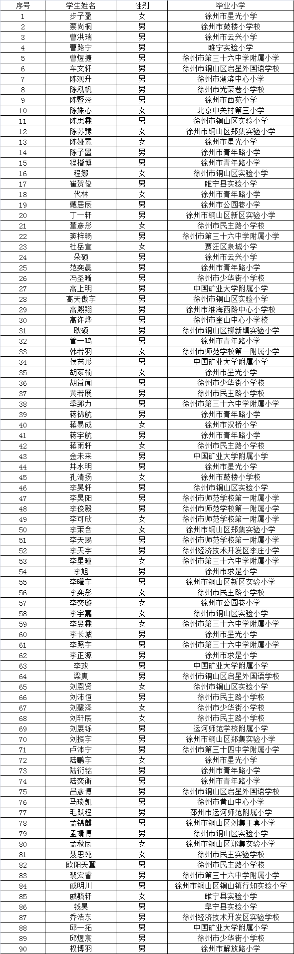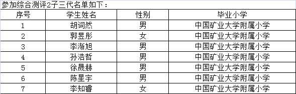 徐州市矿大实验学校2017年小升初参加综合能力测评2名单