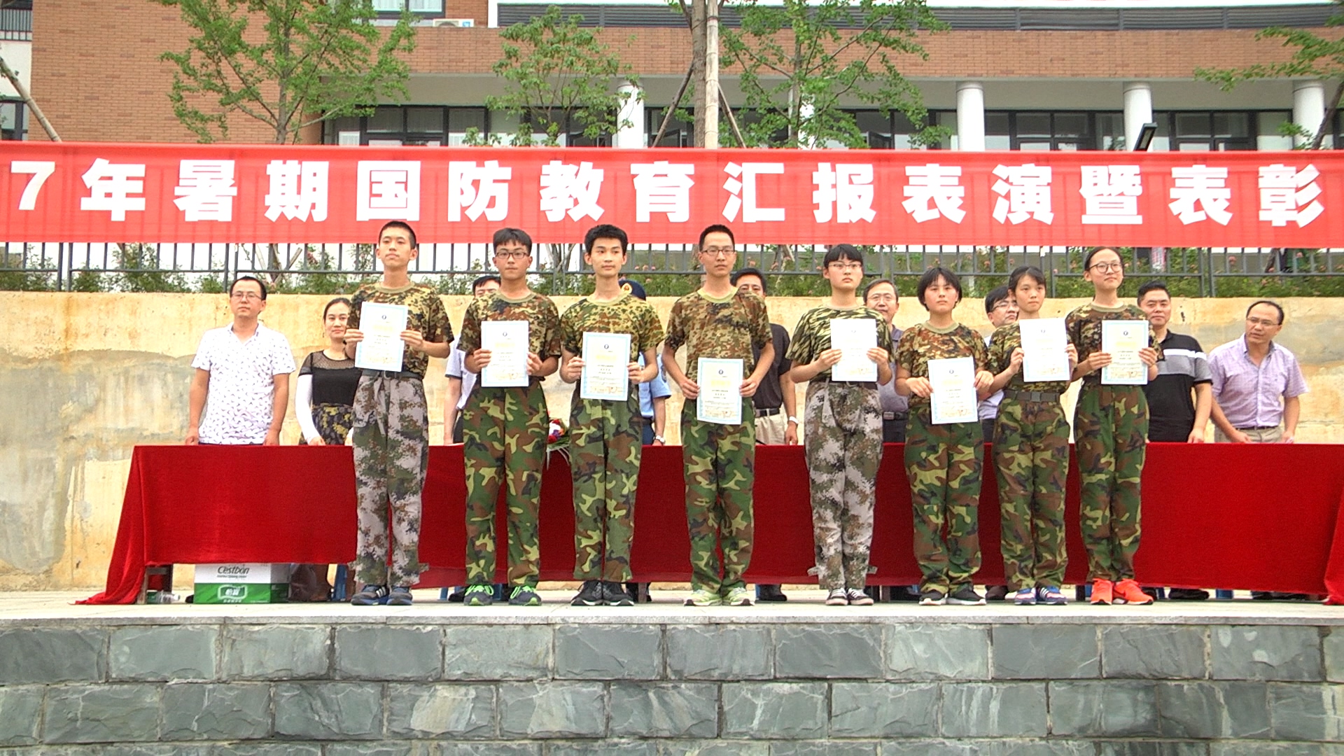 2017年7月14日下午4:00,我校2017年暑期国防教育汇报表演暨表彰大会在学校操场隆重举行。空军95892部队许副团长,校长王健鹏、副校长林清华、黄永乔、罗永奇,教务主任武昌和全体教官以及相关老师出席了汇报表彰大会,学校还邀请新生家长参观表演。大会由德育处主任杨伟利主持。
