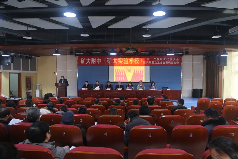 矿大附中(矿大实验学校)第三届三次教职工代表大会暨第八届三次工会会员代表大会于2017年12月24日下午2:30在中学讲习堂召开。大会由附中工会主席李海南主持,矿大工会领导李来成主席到场并做了重要讲话。
