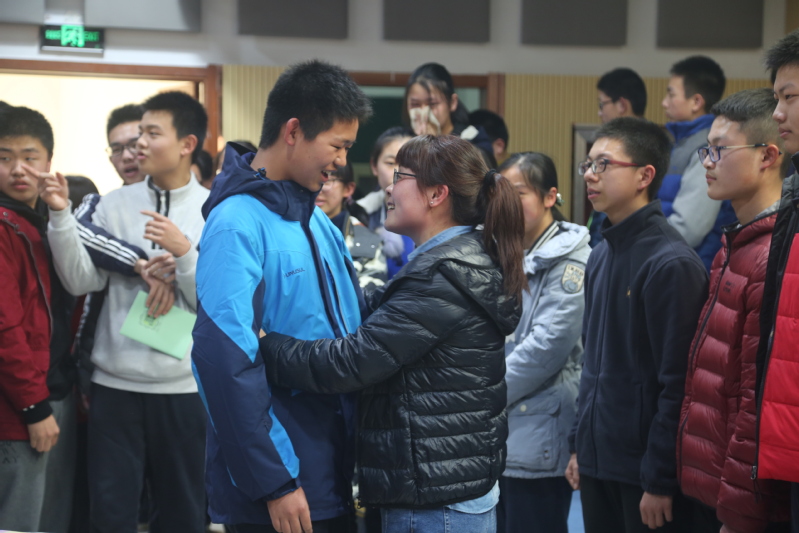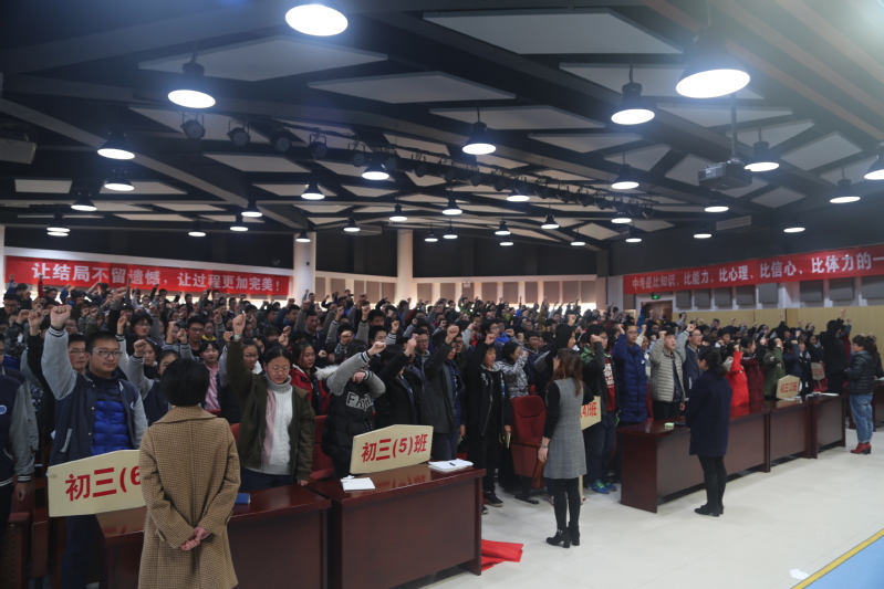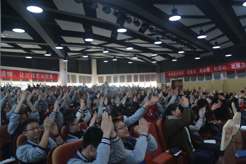 互动环节中,学生积极踊跃登台。徐老师请上台的每位学生面对全校师生大声喊出自己姓名、理想中的高中、中考分数,并作出承诺,其他的学子喊出“你是最棒的”、“你一定行”等话为他们加油。上台做出承诺的几十位同学,脸上挂着自信的微笑,仿佛在向全世界宣告:我一定可以。