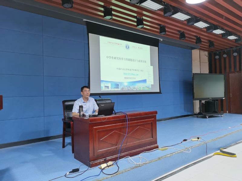 首先,阎主任从一个故事开始今天的讲座,他介绍了我校三名学生在疫情期间开展的徐州市初中生居家生活的情况调查,并展示了他们的成果。阎主任又从两个方面向大家介绍了研究性学习的设计与成果。我校从2013年开始参加研究性学习活动,由初中部逐渐扩大到高中部,并且在近几年取得了优异的成绩。