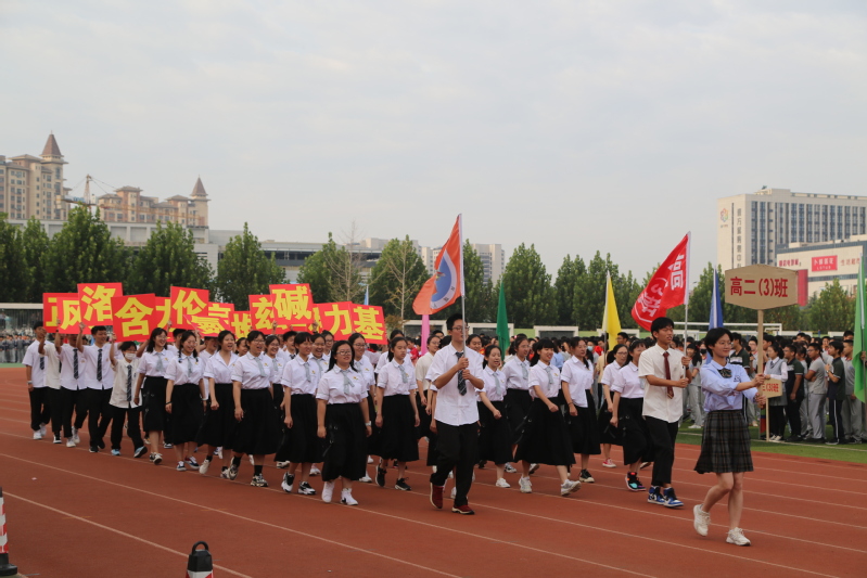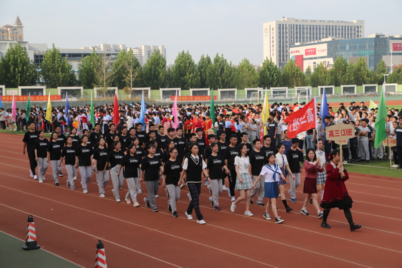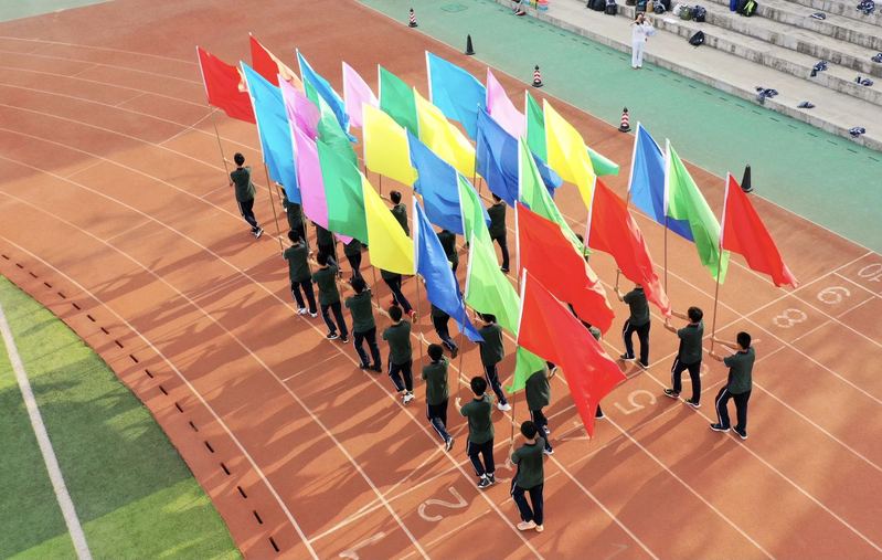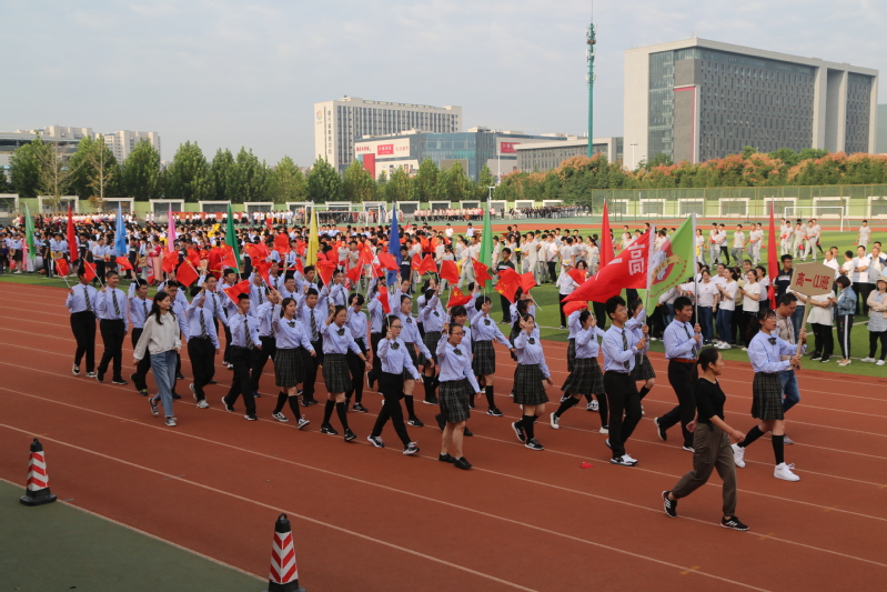 首先,进入主席台视线的是彩旗队、裁判员方队,还有各班级的方队,他们英姿飒爽、意气风发,为我们展现了优美精彩的表演。随后全校升国旗仪式,在庄严的国歌声中,全校师生起立,慷慨激昂高唱《义勇军进行曲》。升旗仪式后,罗永奇副校长向全校师生致开幕辞,激励全体运动员在本次运动会中赛出成绩、赛出自信、赛出风格;裁判员代表周琛老师代表全体裁判员宣誓,保证比赛中评判公平、公正;运动员代表畅轩同学庄严宣誓,表示努力通过运动来增进体质、发扬体育运动,以强健的体魄和阳光的心态面对未来的学习生活,为国家和社会的建设发展不断拼搏。