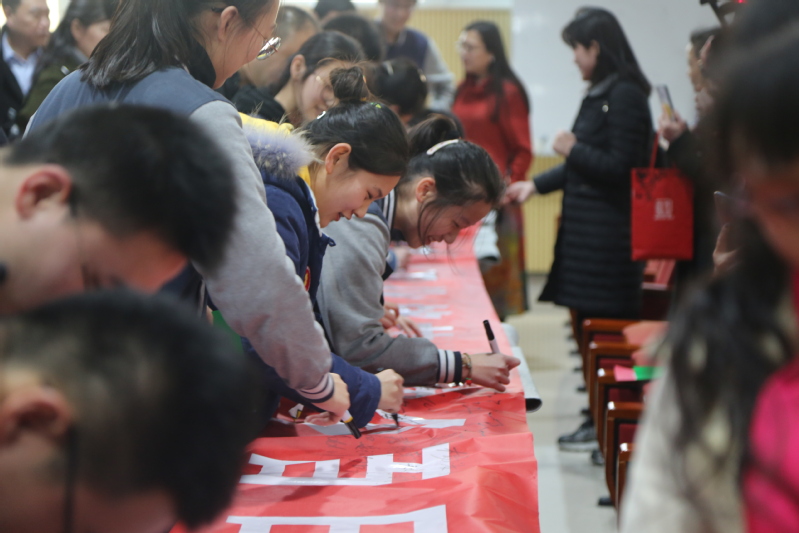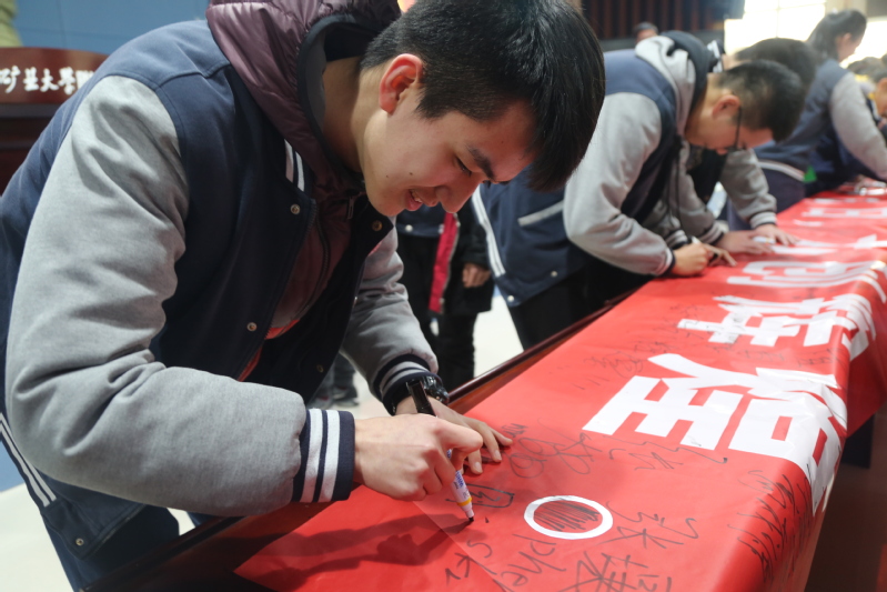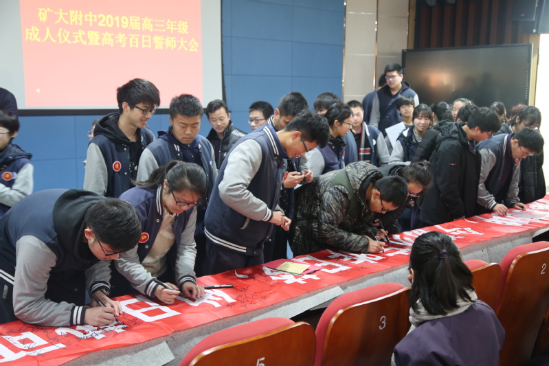 会后,全体学生在誓词横幅上郑重签下自己的目标和誓言。本次誓师大会敲响了高三全体师生加速前进的战鼓,激发了学生们的学习热情,坚定了全体高三师生在2019年高考必胜的信心。百天秣马厉兵,六月梦圆矿附!
