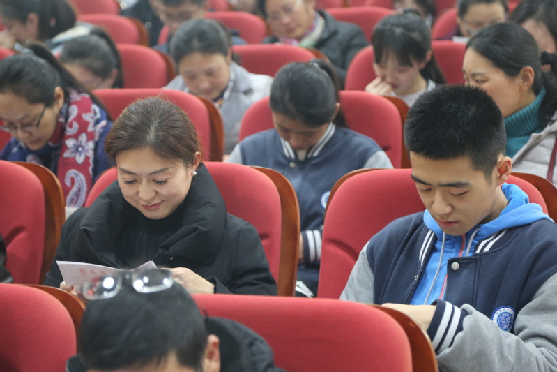首先,家长代表——张智星妈妈发言,她表达了对学校严格管理的高度认可,对老师们悉心培养的真诚感谢,也给家长们提出了一些可行性的建议,并号召全体同学全力以赴,决战高考。