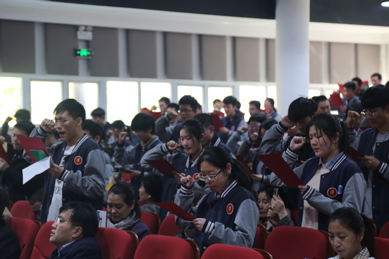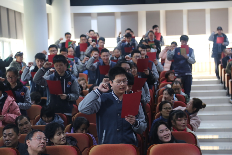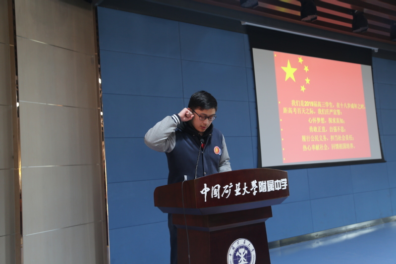 侯晓睿同学代表全体学生发下高考誓言:“存感恩之心,立鸿鹄之志,惜寸光之阴,做最好自己”,她提出要用信心、热情,和不认输的心态,来应对接下来一百天同学们可能存在的焦虑和担心。