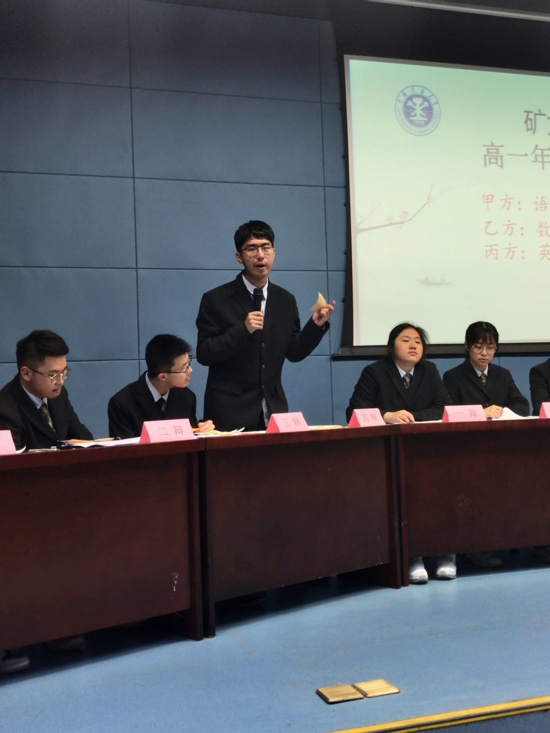 本次参赛的选手有:甲方一辩赵若煊,二辩王峒宇,三辩裴宏睿,四辩罗睿齐;乙方一辩王淑娴,二辩庄晶涵,三辩袁睦尧,四辩陈柯润;丙方一辩王广居,二辩畅轩,三辩曹一航,四辩许一诺。在场嘉宾有高一年级组长王伟主任,语文组雷云霞老师、杨双老师、王琛老师以及应邀前来参观的部分家长代表。