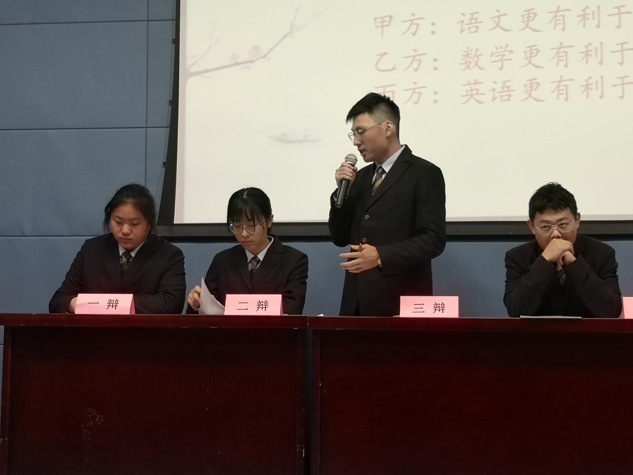 “语数外三科,哪一科更有利于成才?”不知道大家有没有想过这个问题。为提升学生思辨能力,丰富学生课余生活,激发学生自主思考能力,我校高一年级于2020年11月5日晚,在讲习堂举办了一场别开生面的三方辩论赛。