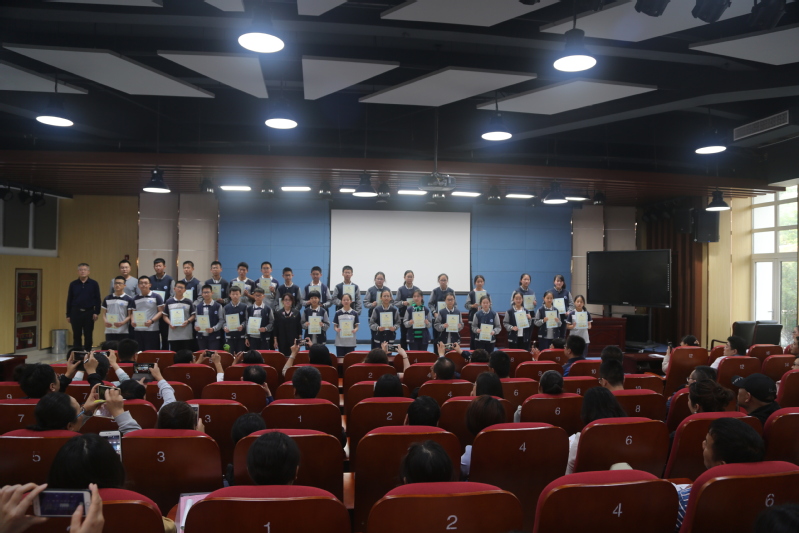 会议第二部分是各年级组活动,年级主任对此次期中考试成绩做分析;邀请育子有方的家长上台分享育子经验;还为此次考试成绩优异的学生们颁发了奖状。两个年级共90名成绩优异的同学上台接受表彰。初二年级,面临地理、生物小中考,地理老师刘红萍、生物老师喻明学老师也分别上台向家长讲解了小中考事宜。