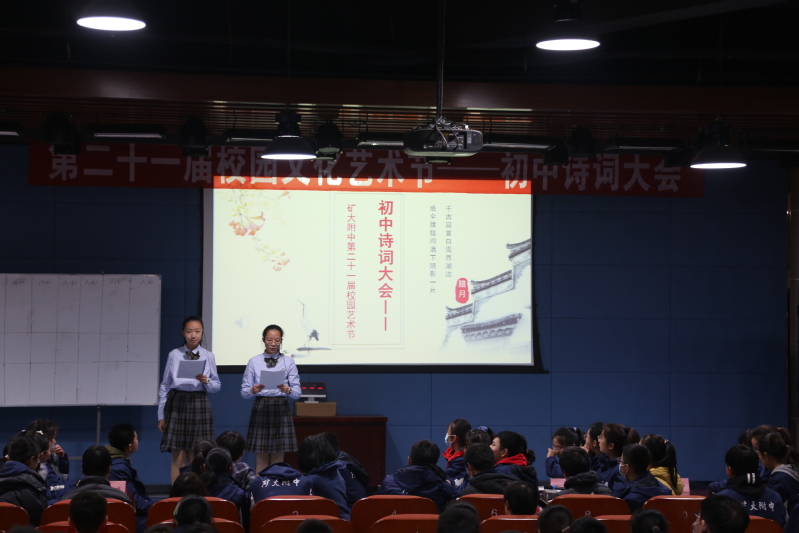 苍茫华夏,诗意中国。2020年12月23日,我校在讲习堂举办诗词大会。本次大会的评委老师有韩书文、曹瑛、王述军、衡方方、李峰、徐仲琳和张舒等老师,参赛班级为初一、初二两个年级10个班,每班派出6名同学组成最强战队。